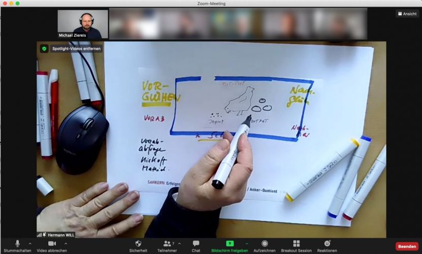 Input- und Output-Orientierung im Trainer-Training. Eine Live-Skizze entsteht vor Publikum