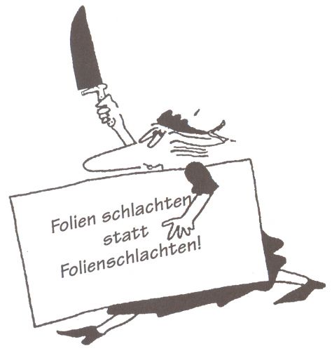 Die Teilnehmenden bekommen vorab unser „Mini-Handbuch" als Vorbereitung und sie mailen vorab vorhandene Vortragskonzepte, Ablaufpläne und Medien an den Trainer.
